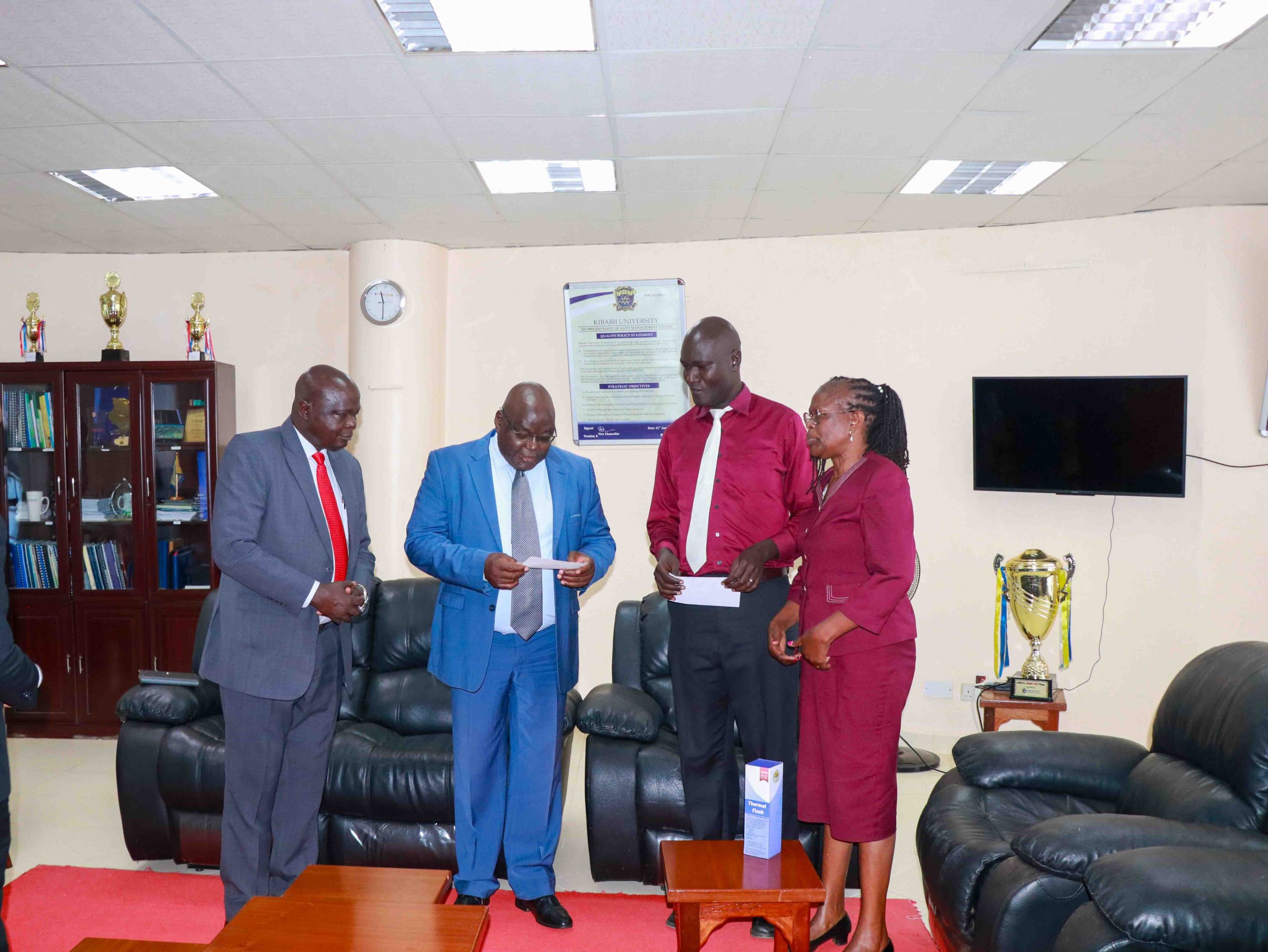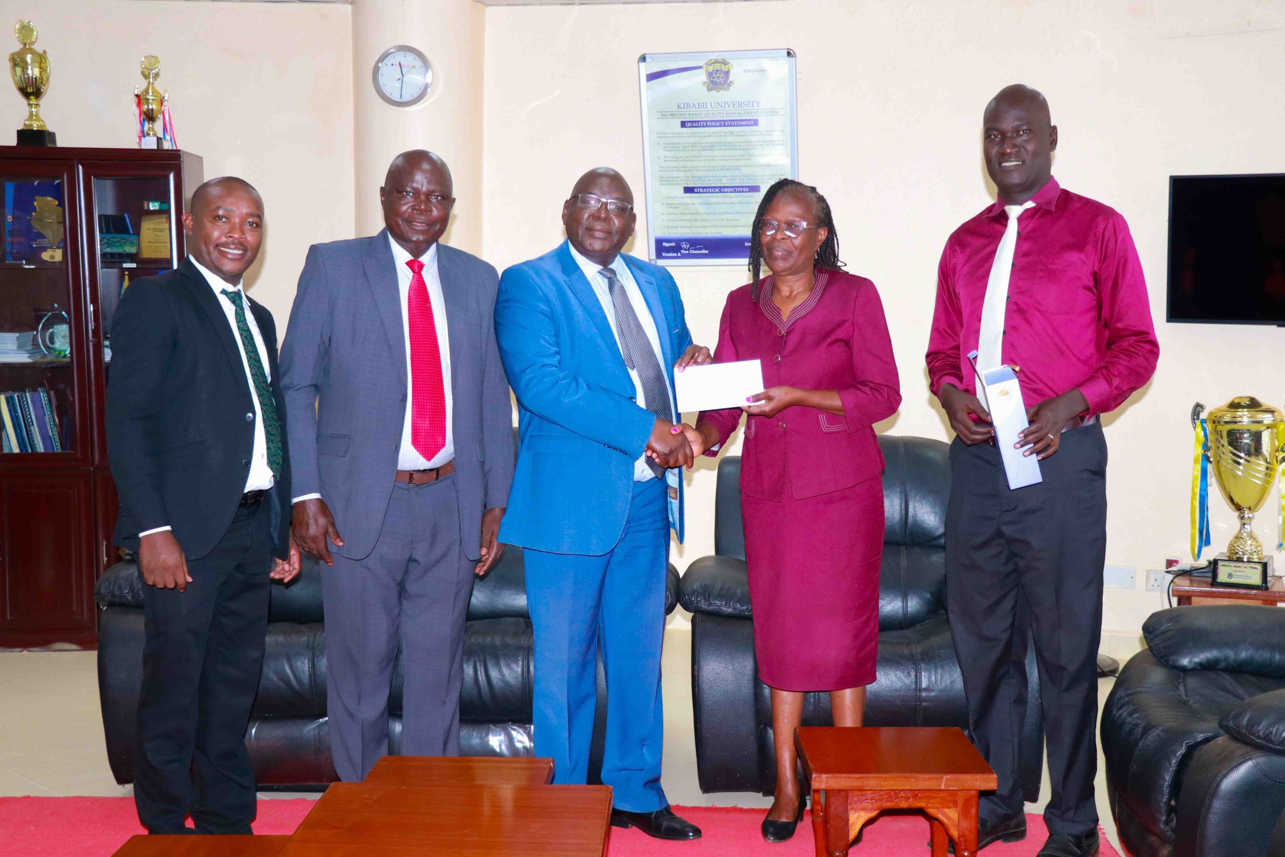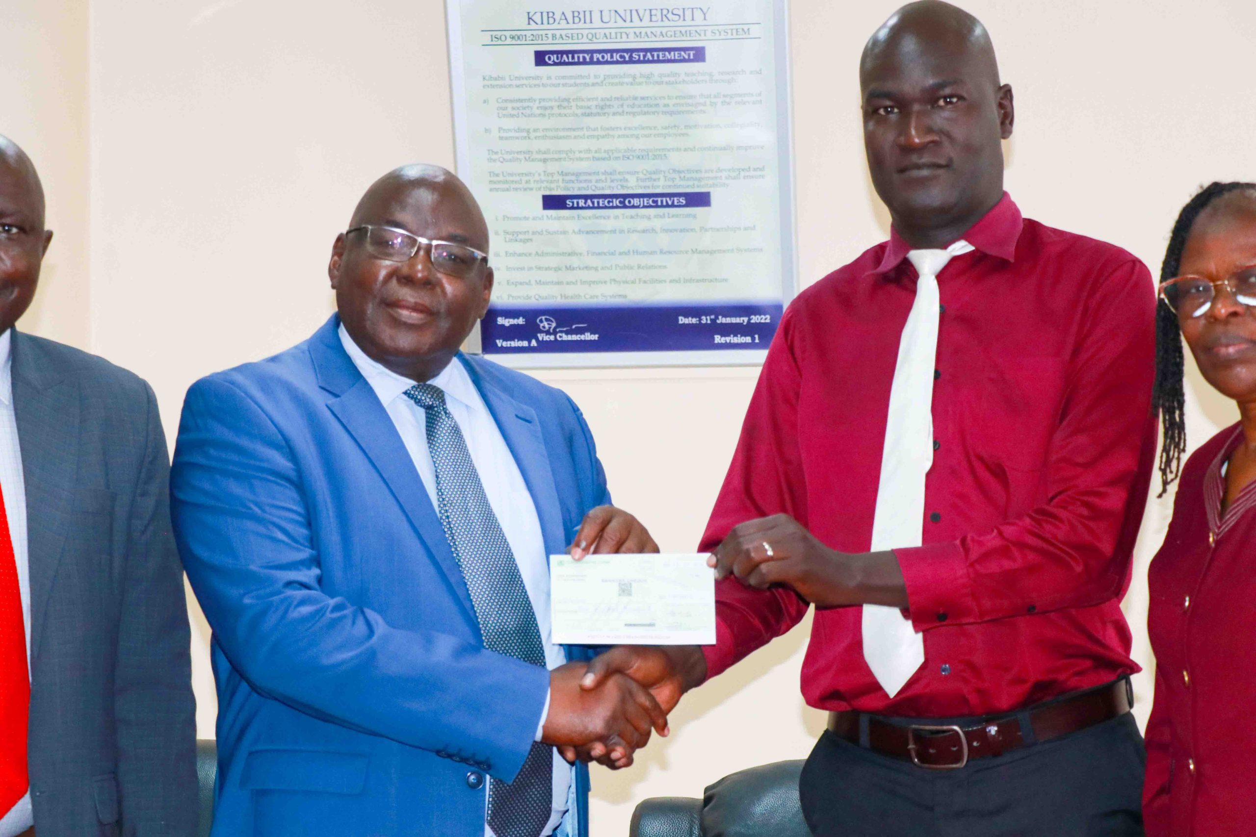 The Kenya National Police SACCO extended generous support to Kibabii University’s Cultural Week 2025 by donating KSh. 100,000. The cheque was presented to the Vice Chancellor, Prof. Isaac Ipara Odeo, on Monday, 27th October, 2025, by Mr. Zebedee Otee, a lecturer at Kibabii University and a long-serving member of the SACCO.