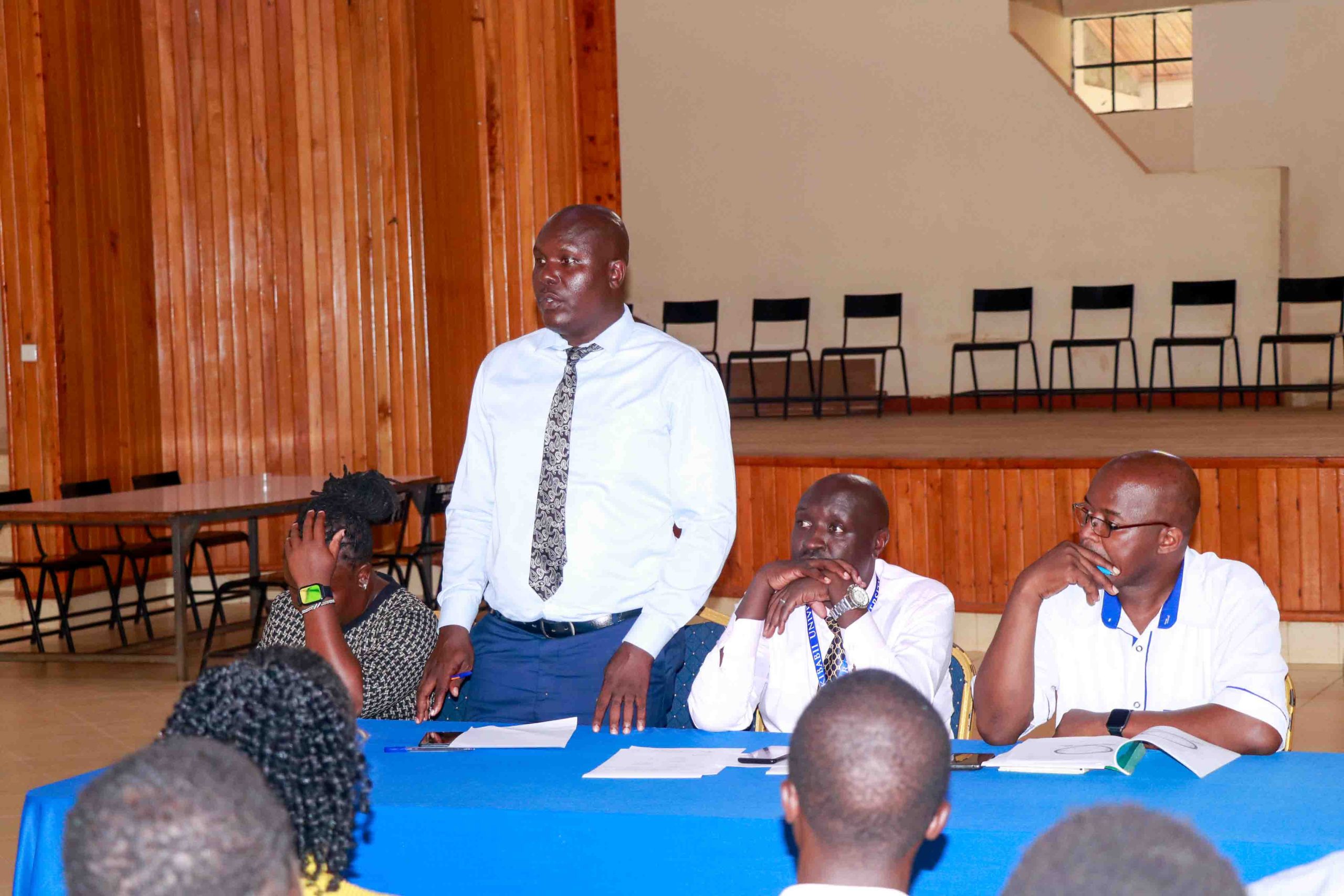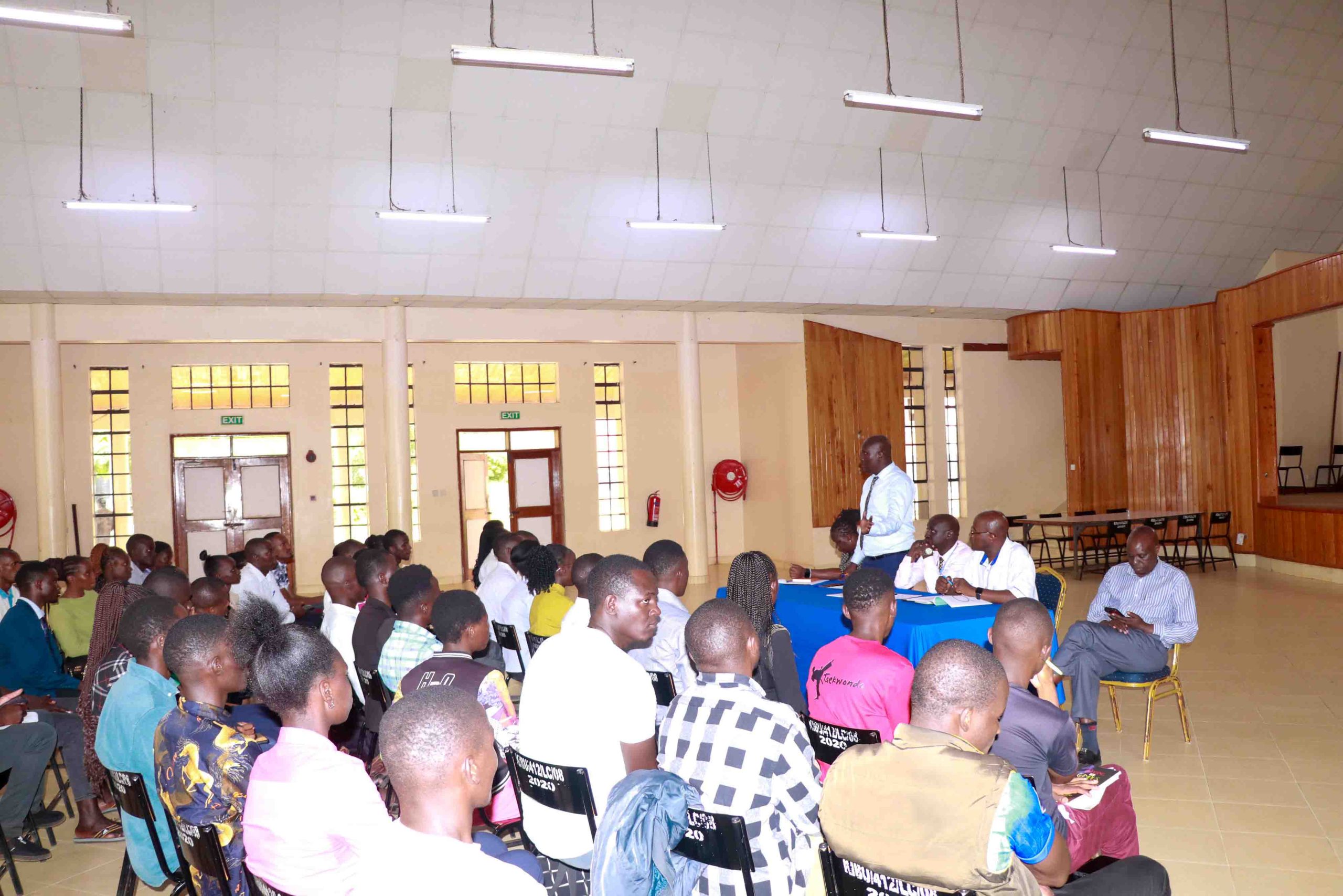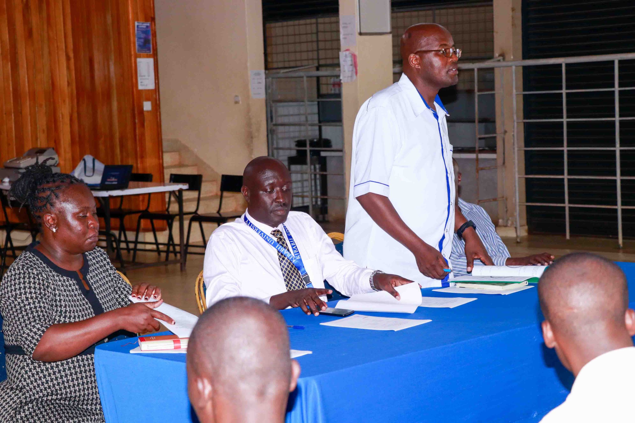 The preparations continued on Friday, 13th March 2026, when the Electoral Commission, in collaboration with the University’s Security Department, held a briefing for all cleared candidates. The session brought together key figures, including Prof. Robert Kati, Chair of the Electoral Commission; Mr. Lusweti, representing the Dean of Students, Dr. Leunita Makila; Mr. Benard Opiyo, Head of Investigations at Kibabii University, standing in for Mr. Zablon Mamai, the Head of Security; Mr. Aggrey Shamwama, Assistant Security Officer; Mr. Joseph Silasi, Head of Security Operations; and Mr. Benjamin Ekamai, the Officer Commanding Station (OCS) at Mayanja Police Post. Their participation underscored the University’s commitment to ensuring a secure, credible, and well-coordinated electoral process.