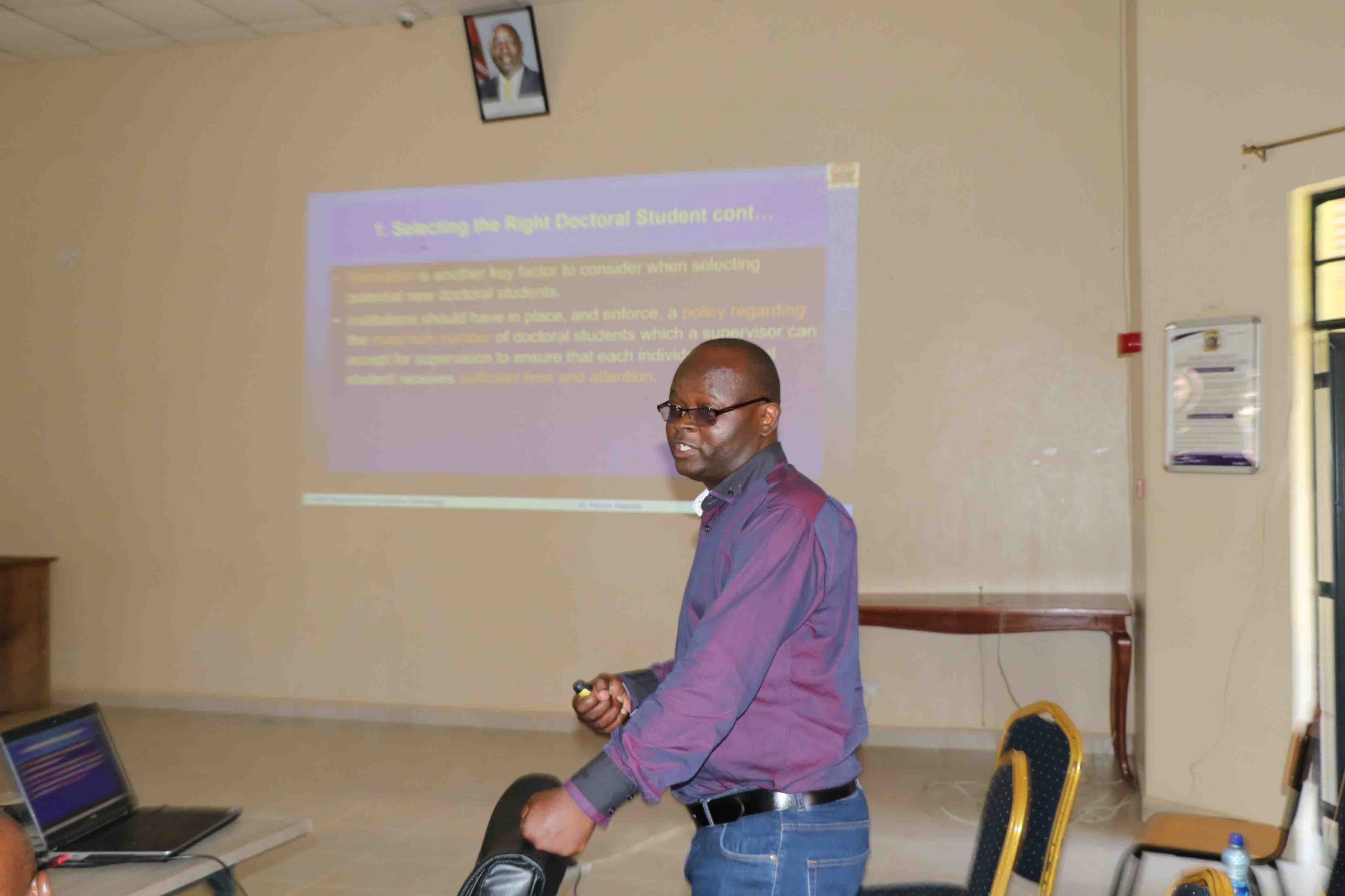 On his part, Prof. Franklin Wabwoba, gave the participants his personal experiences in a captivating and insightful talk on supervision as a Professor of Information Technology. He particularly emphasized on ethics by supervisors as they performed their pivotal role of ensuring quality postgraduate experiences.